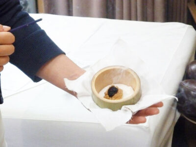 一鍼主催「お持ち帰りできる!!ユニークなお灸でからだぽっかぽか!!『塩灸手作り講座』編」を開催いたしました。当院の半藤先生が講師として、竹筒の中のもぐさの台座として塩を置く「塩灸」について行われました。講座では、塩灸の効能について学び、塩灸手作り体験、ツボ探し体験をしていただいた後、実際に塩灸をすえていただきました。作っていただいた塩灸は、竹筒もセットでお持ち帰りして、ご家庭の中でも楽しみながらすえていただければと思います。