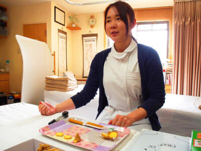 一鍼主催「お持ち帰りできる!!ユニークなお灸でからだぽっかぽか!!『しょうが灸手作り講座』編」を開催いたしました。当院の半藤先生が講師として、もぐさの台座としてしょうがを置く「しょうが灸」について行われました。講座では、しょうが灸の効能について学び、しょうが灸手作り体験、ツボ探し体験をしていただいた後、実際にしょうが灸をすえていただきました。作っていただいたしょうが灸は、お持ち帰りして、ご家庭の中でも楽しみながらすえていただければと思います。